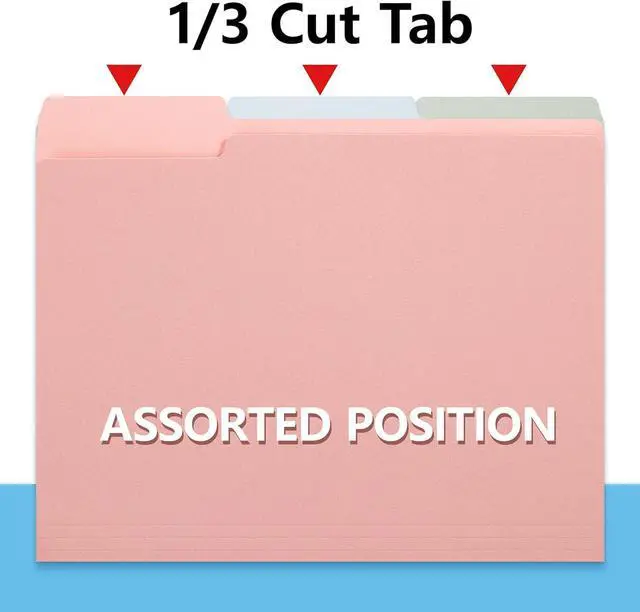 1/3 Cut Tab: 1/3 cut reinforced tabs in assorted positions (left middle right) for easy labeling and readability. Ideal for managing and classifying academic papers working documents profiles contract documents etc. Stay organized and in control with these user-friendly folders.
