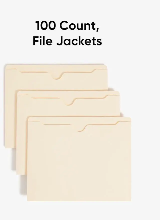ENHANCED ORGANIZATION: Organize your paperwork with this set of 100 letter size (11-3/4 x 9-1/2) manila file jackets (flat no expansion) with full height sides for document security and reinforced straight-cut tabs for extra durabilityESSENTIAL