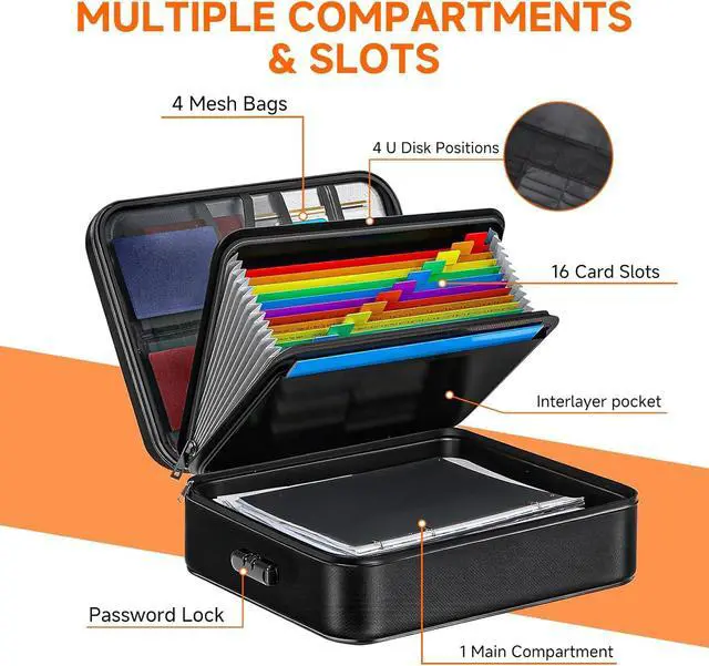 Fireproof & Waterproof Protection: Crafted with upgraded heat-insulated materials, this document organizer withstands temperatures up to 5200°F. Combined with water-resistant layers, it protects your valuables from fire, rain, and spillsperfect for home, office, or travel emergencies.
