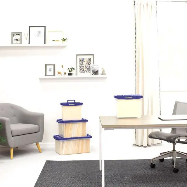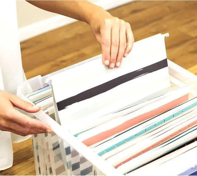 Plastic file boxes with lids provide organized and secure storage and transport of letter and legal size files