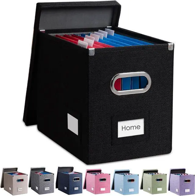 [DECORATIVE] Say bye bye to boring paper filing boxes! The Prandom file folder box set in black linen provides a stylish way to organize all your papers and supplies; Functional features & a beautiful design create THE ultimate filing organizer