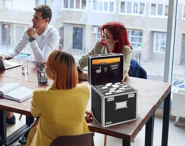 DURABLE - Built to last, the file box with lock features reinforced hinges, durable corners and metal rails, and anti-scuffing rubber feet.