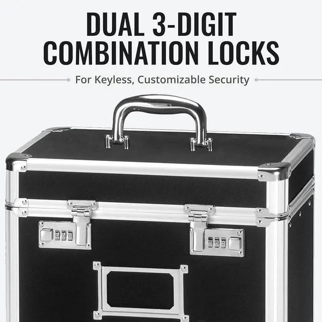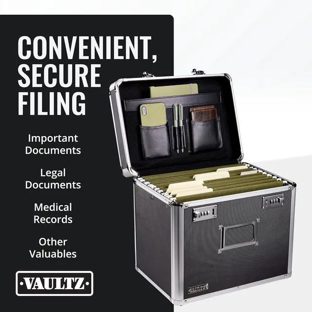 COMBINATION LOCK - Complete with a convenient combination lock for extra security, our portable file box with handle provides features trademarked Vaultz key-less locking.