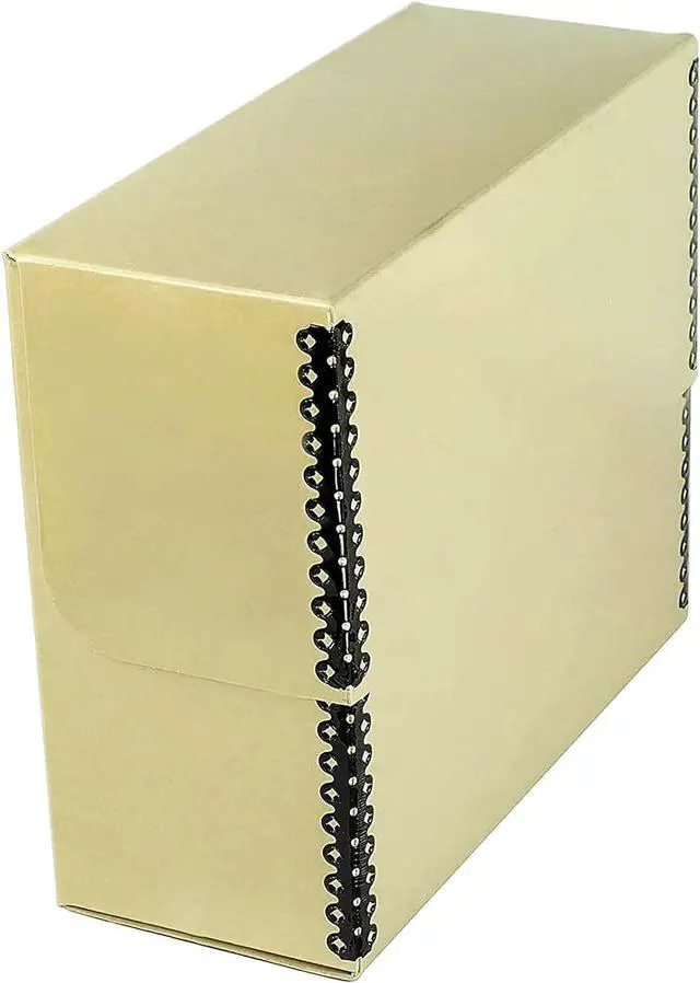 Legal-sized Box, 15.5 " x 10.5 " x 5" wide, manufactured in the US from Tan 60pt Archival Boxboard with metal edge construction for additional strength