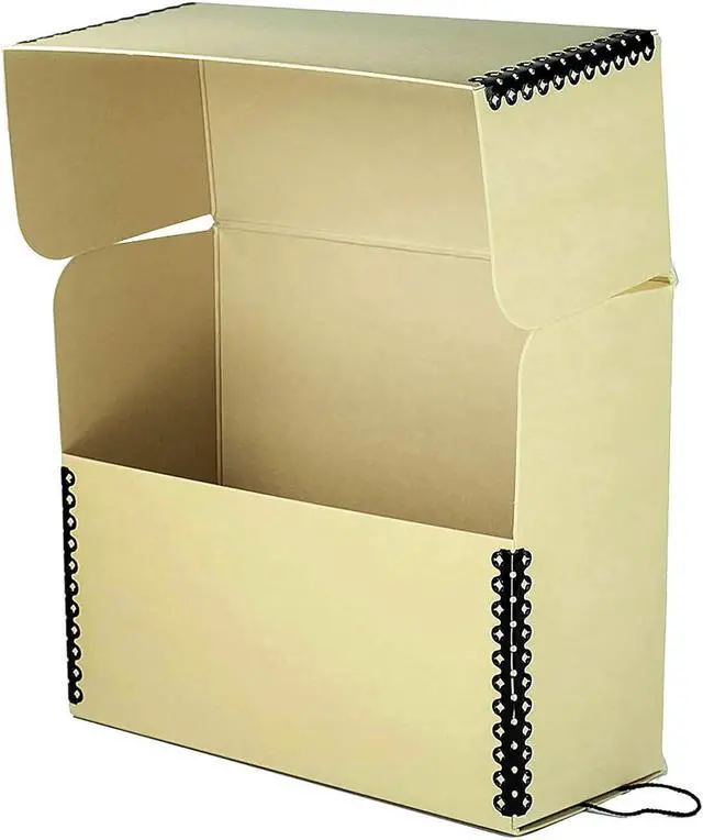 Acid-free, lignin-free, buffered material stores documents well. An attached nylon string for easy shelf removal is included