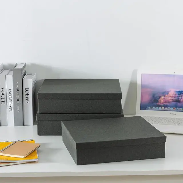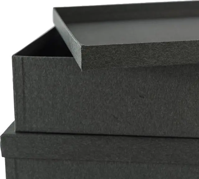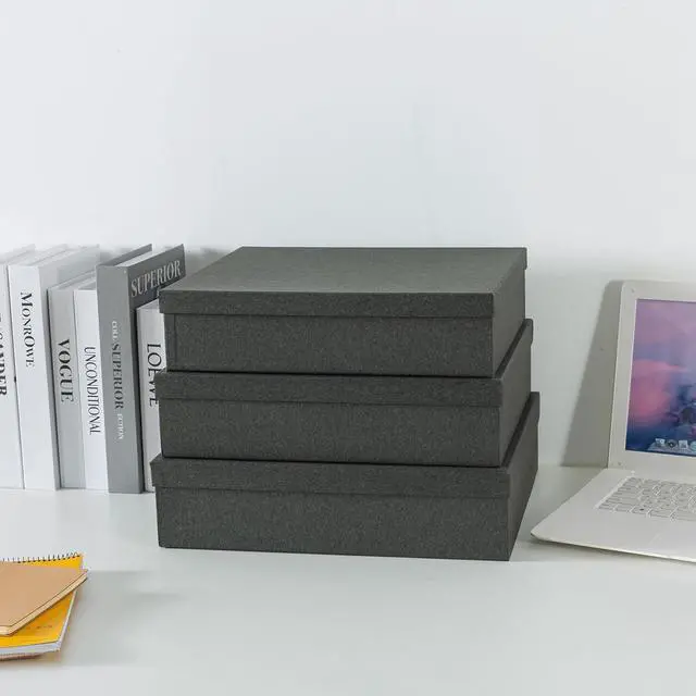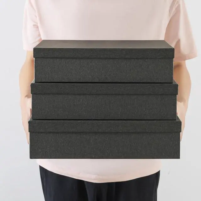 QUALITY CRAFTSMANSHIP IN VARIED SIZES: Constructed from premium kraft paper, this nesting set can be used as photo storage boxes and storage box options, providing elegant and durable storage solutions for any home setting. The set includes Small (13" x 11.8 " x 3.3 " ), Medium (14" x 12.4 " x 3.5 " ), and Large ( 14.7 " x 13" x 3.7 " ) boxes.