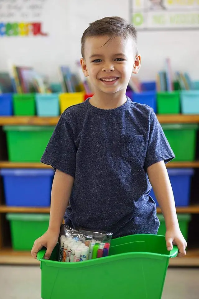 Fits scrapbook paper, letter-size paper and magazines Link several bins together for maximum stability Front and rear handles for easy gripping Made of sturdy drop-resistant plastic Exterior measures 14-1/4 x 5-1/4 x 7 inches