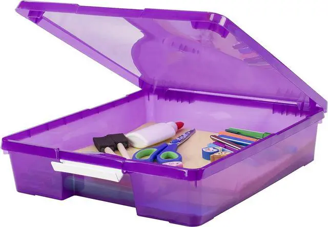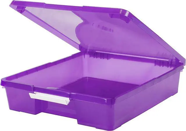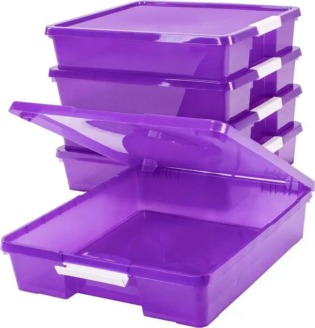 Storex Classroom Craft Project Box Stacking Plastic Organizer Fits 12x12 Scrapbooking Paper, Purple, 5-Pack (63206U05C)