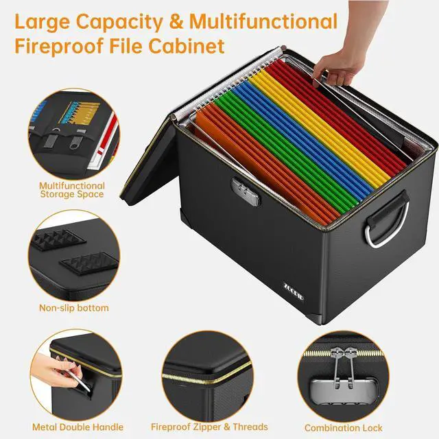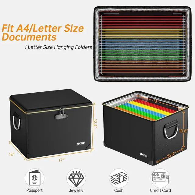 Hard Case Fireproof File Organizer: The fireproof file box features dual flame-retardant technologyan outer layer with a thickened fireproof material and an inner oxygen-blocking layeractively cutting off the oxygen supply during fires, eliminating paper carbonization at its source. The box has passed the