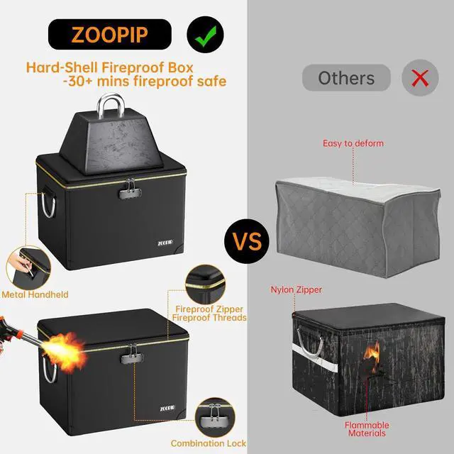 Completely Fireproof Document BoxEngineered with exclusive fireproof zippers and interwoven fireproof threads, this box achieves total flame isolation! Unlike traditional safes, its lightweight design ensures quick evacuation with important documents, certificates, laptops, passports, and cash during emergencies