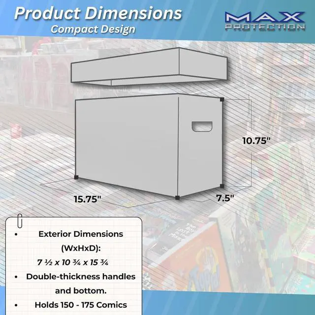 : With double thickness handles and bottom, the Max Protection comic book storage short box provides superior protection and durability for your prized collection. Never worry about accidental tears or damage; these boxes are specifically designed to withstand daily handling, keeping your comics safe and intact for generations to come.
