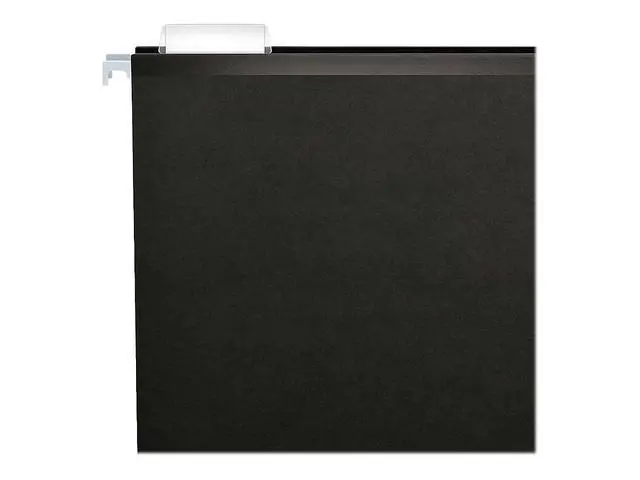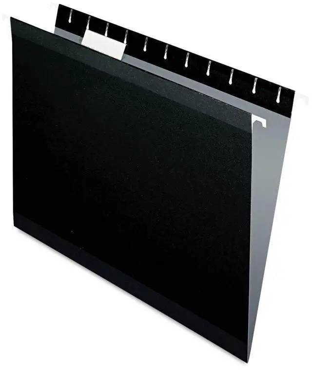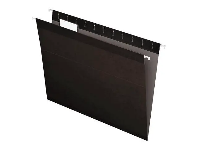 Pendaflex Reinforced Hanging Folders have laminate strips to resist rips and tears. A lighter interior helps prevent misfiling. Includes labels and 25 clear 1/5-cut tabs. Letter size, black. 25 Per box.