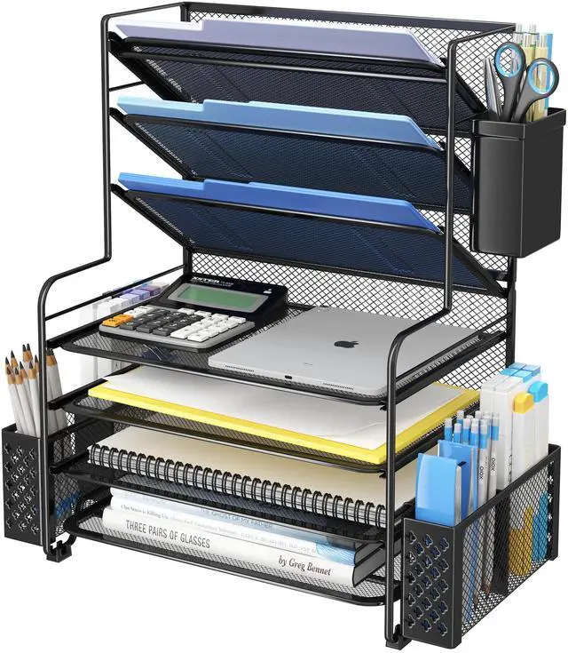 Simple Trending 7-Trays Mesh Desktop File Organizer , Black