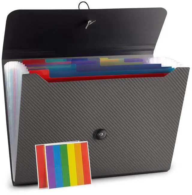 Multi-Color Inner Compartments: With 12 separate and colorful compartments, this file folder is perfect for storing and organizing documents, pictures, notes, and any other items. Product size is 13×9.4×1.1Fit for A4 paper 100 pcs.