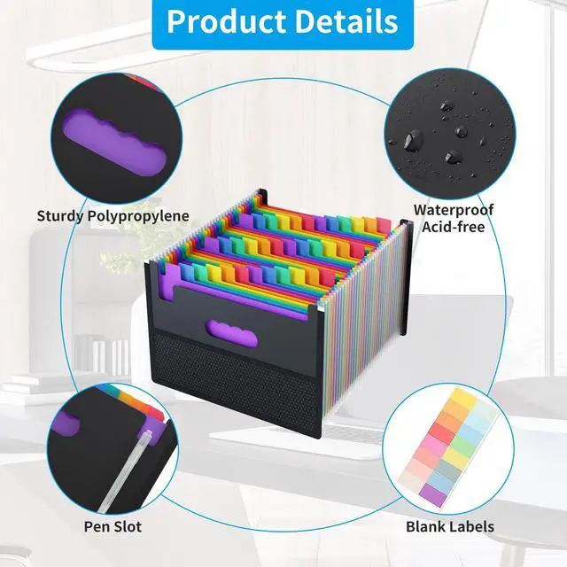 The file folder provides 36 pockets for reliable partitioning, could expand to 10 inches. Perfect for families, schools, and offices organization.