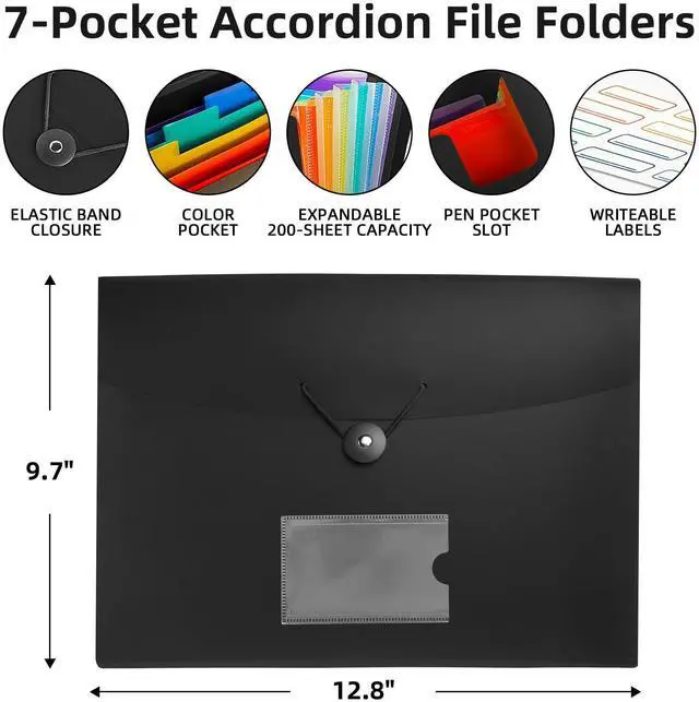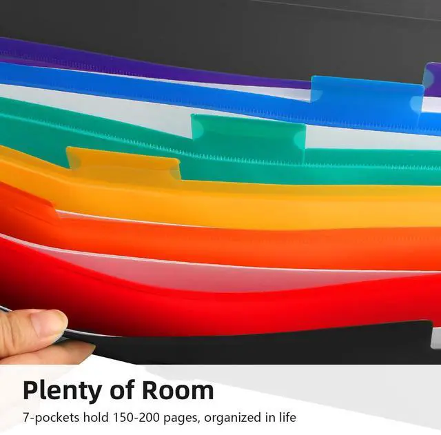 With 7 colorful Pockets makes it easy to sort and organize assignments, notes, reports, holding up to 200 sheets of papers to meet families, schools, offices and business trips.