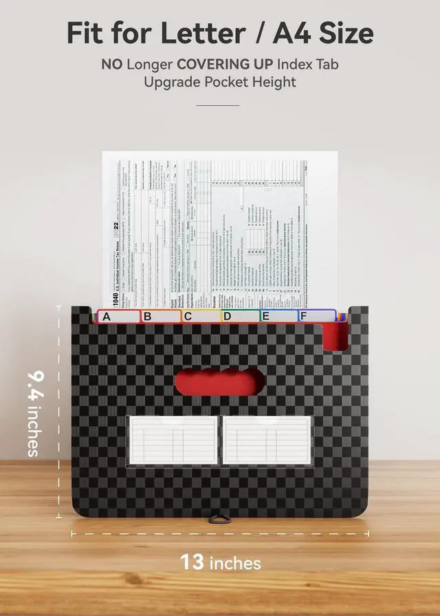 UPGRADE POCKET HEIGHTFiles no longer covering up index tab. Expanding file folder fit for Letter/A4 size documents, can store multiple items, family tax records, bills, receipts, invoices, identification documents, medical finance records, etc.