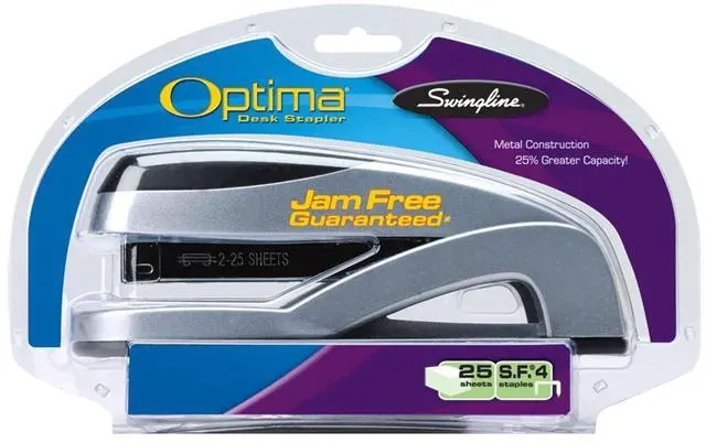 Sturdy stapler is built with a solid metal structure to ensure durability. Swingline stands behind this reliable stapler with a limited lifetime warranty. Optima Staplers work hard to provide steady, jam-free service. They are designed for optimal comfort and convenience.