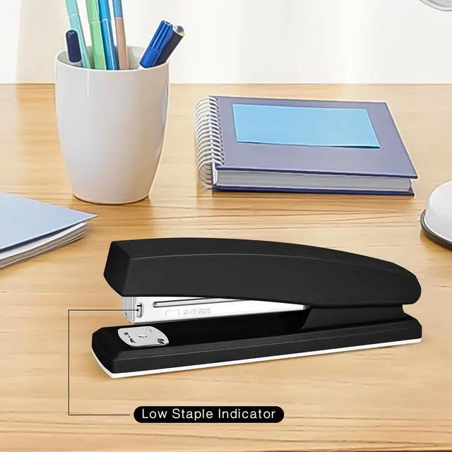 This stapler can easily handle up to 25 sheets of paper, making it perfect for everyday office use.Its design is straightforward and user-friendly, with a classic black color that looks professional and doesn't clutter the desk. it can handle all your stapling needs with ease.