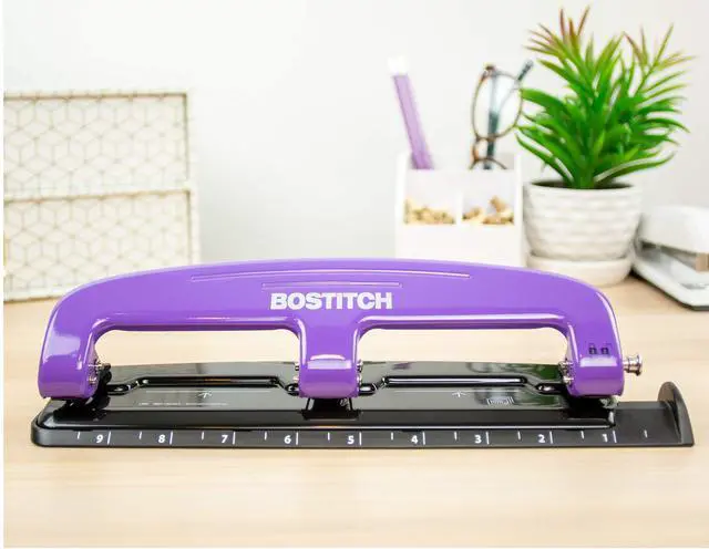 With its ProPunch technology, easily three-hole punch up to 12 sheets, jam-free. Designed with sleek, comfortable curves and a durable all-metal design for long-lasting performance. To ensure consistent hole placement, the punch has an integrated paper guide + ruler. Ideal for the home, office or school, this hole puncher is the perfect tool for any setting.
