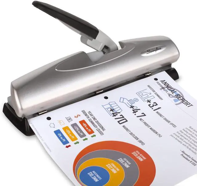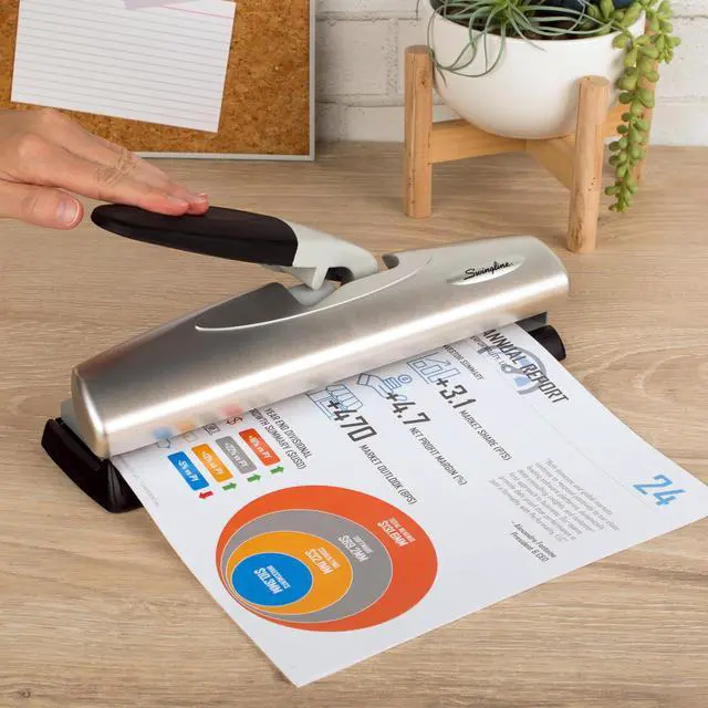 Complete your projects with a light touch. Compared to traditional desktop punches, this model requires less manual effort to operate. Punches precise 9/32” holes every time.