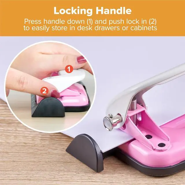 Patented EZ Squeeze technology allows for 50% easier performance. Engineered with advanced dies, use the paper punch to slice through paper stacks with ease.