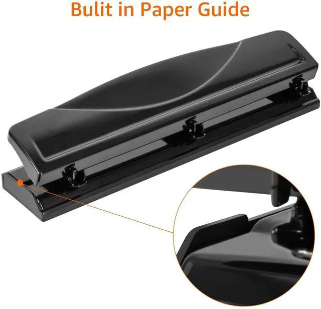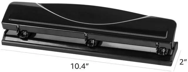 Made of durable metal, the three-hole punch offers long-lasting performance, and its sleek black finish provides a professional appearance on any desktop or table.