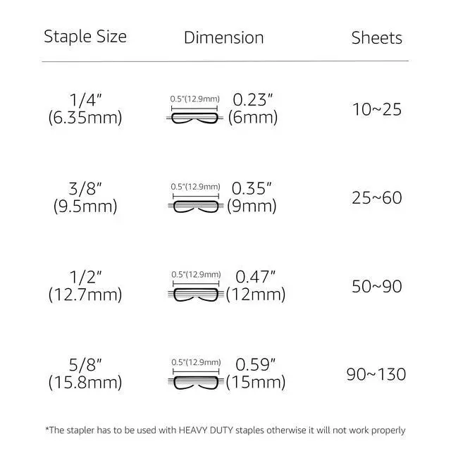 Heavy duty stapler that can staple from 10 up to 130 sheets of standard weight paper at a time; include 1000 5/8" heavy-duty staples (Used for 90-130 sheets)