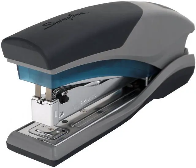 PREMIUM STAPLER This gray-and-blue staplers durable plastic housing protects the internal metal stapling mechanism for long-lasting, reliable stapling you can count on.