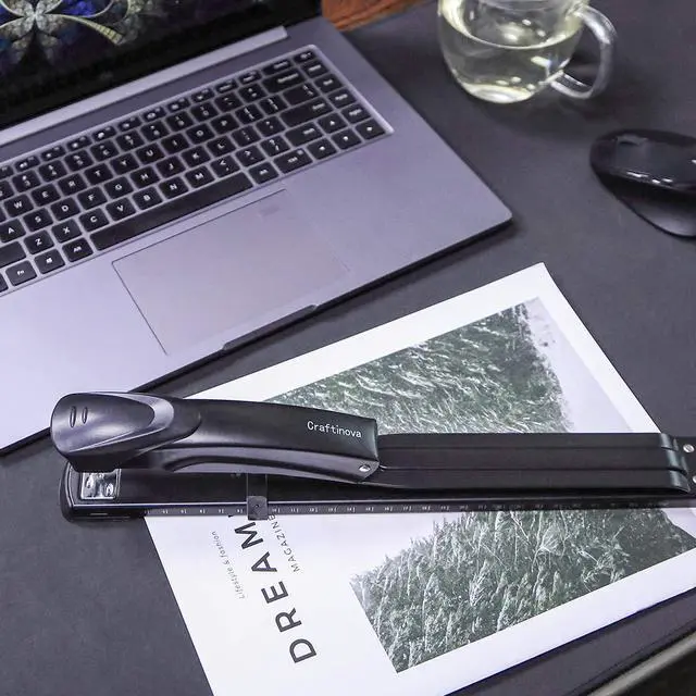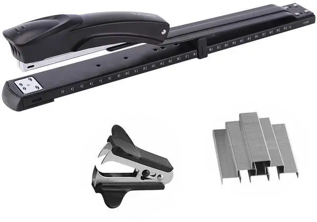 The long reach stapler uses standard 26/6 staples or 24/6 staples, which are easy to find and replace.