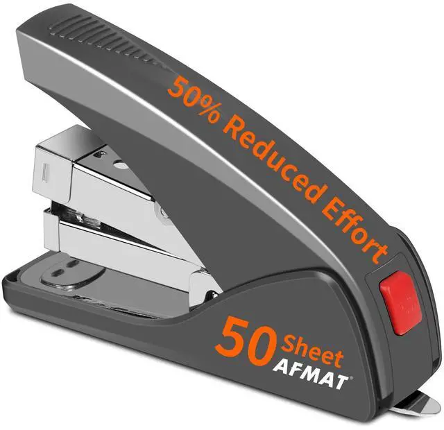AFMAT Ergonomic Stapler for Desk, Low Force, 50 Sheets Capacity, One Finger Touch Stapling, Reduced 50% Effort