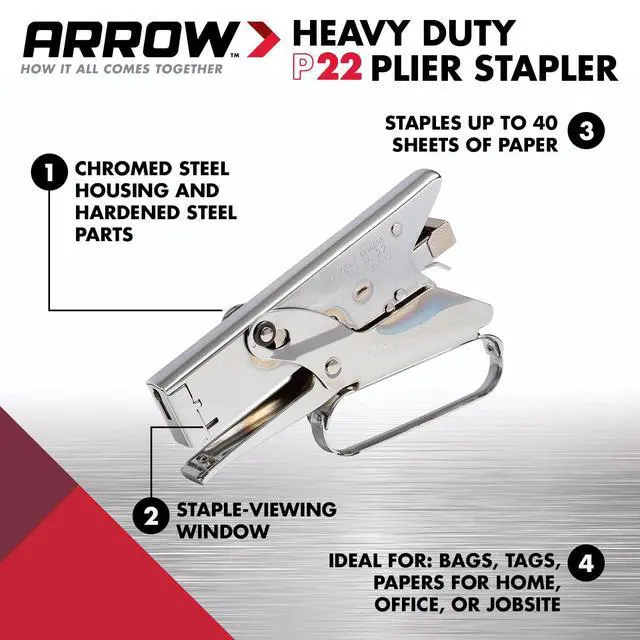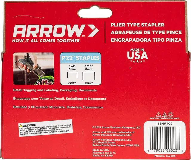 Designed specifically for stapling paper, P22 staples are used on desktops and counters in restaurants, dry cleaners, floral shops, schools, and homes around the world. The P22 staple is specially designed to fit the Arrow P22 plier stapler and is great for use on bags, tags, papers, and labels. Available in two leg lengths, the P22 staple makes everyday paper fastening a breeze.