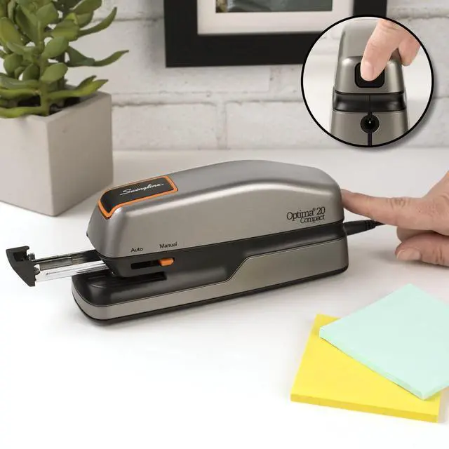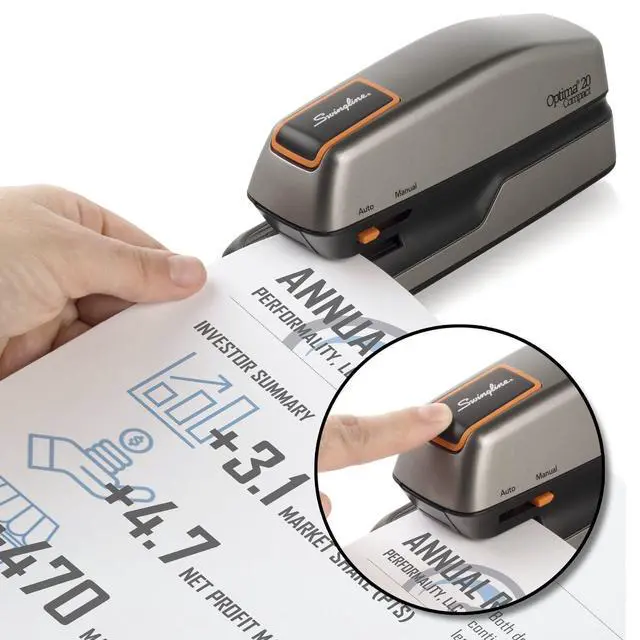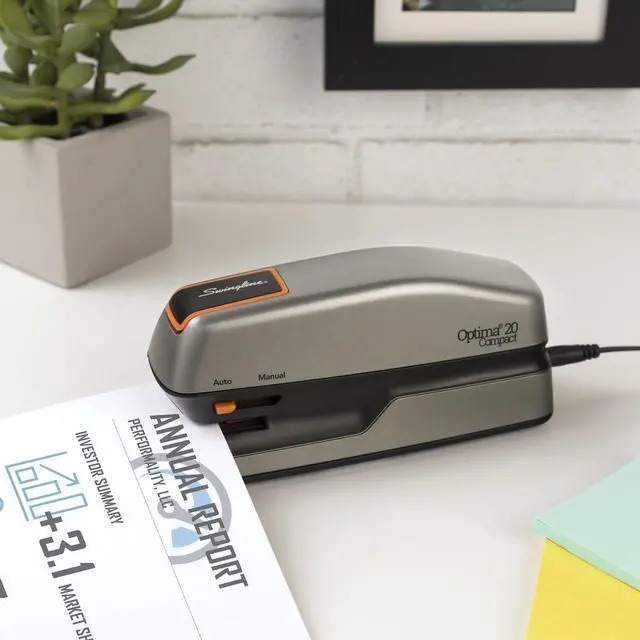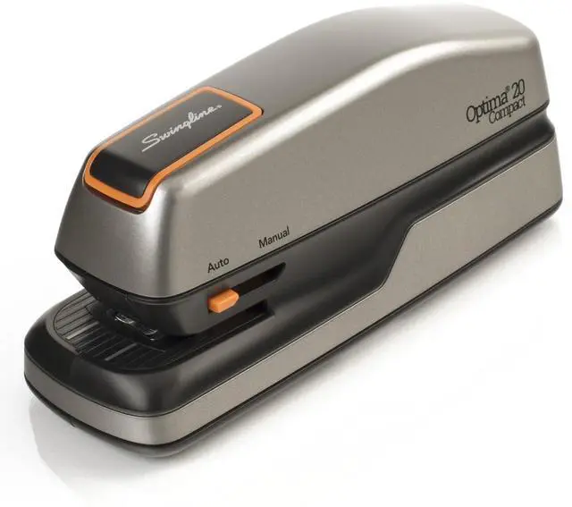 Electric Stapler, 20 Sheet Capacity, Optima 20, Jam Free, Compact, Automatic or Manual, Plug In or Battery, Orange and Gray (48207)