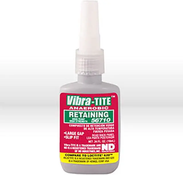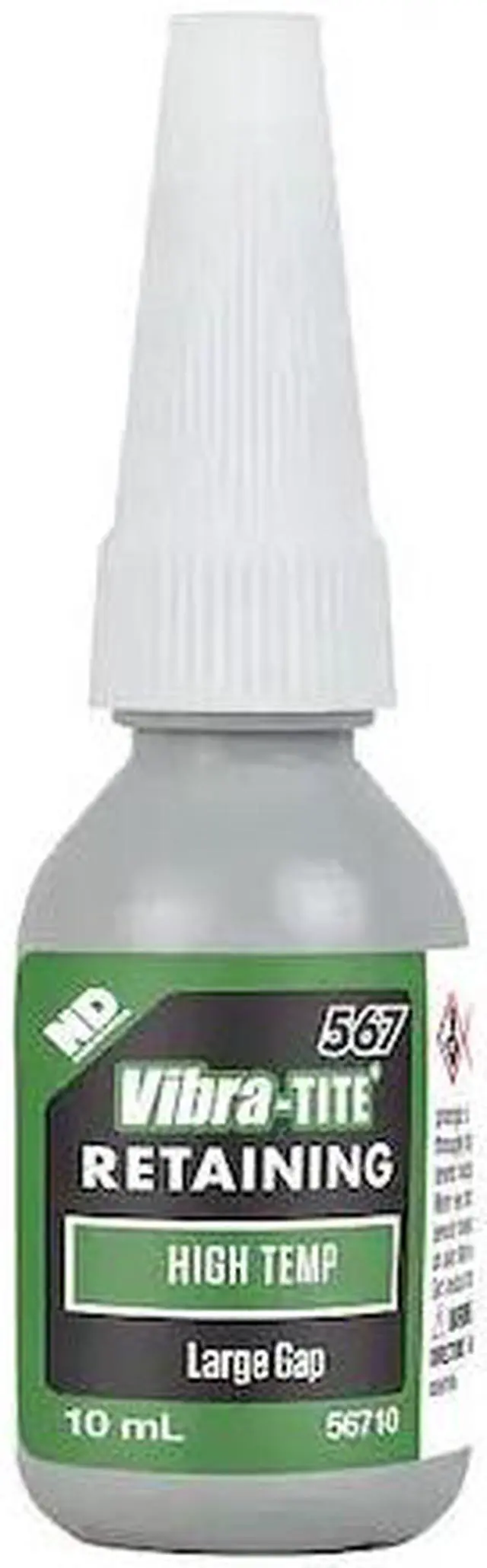 Retaining Compound, For Material Type Aluminum, Plated Metals, Stainless Steel, Steel, Retaining Compounds Properties High Temperature Resistant, Oil Tolerant, Series 567, Container Size 0.3 fl oz, Container Type Bottle, Maximum Gap Fill Size 0.015 in, Working Time 15 min, Maximum Operating Temperature 450 Degrees F, Minimum Operating Temperature -65 Degrees F, Color Green, Full Cure Time 1 day, Shear Strength 3, 500 psi, Standards GM-1183024, Compatible Primer Series Excel 612, Excel 611