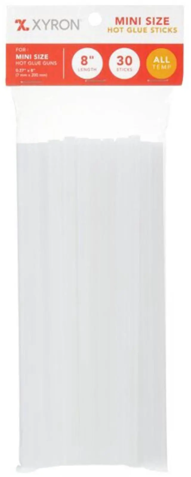 Complete small craft projects with the all-purpose Xyron Mini Hot Glue Sticks. This glue provides a long-term hold even on hard to bond surfaces. The clear adhesive works with both high and low-temperature glue guns. The glue is also acid free and photo-safe. Country of Origin: United States.