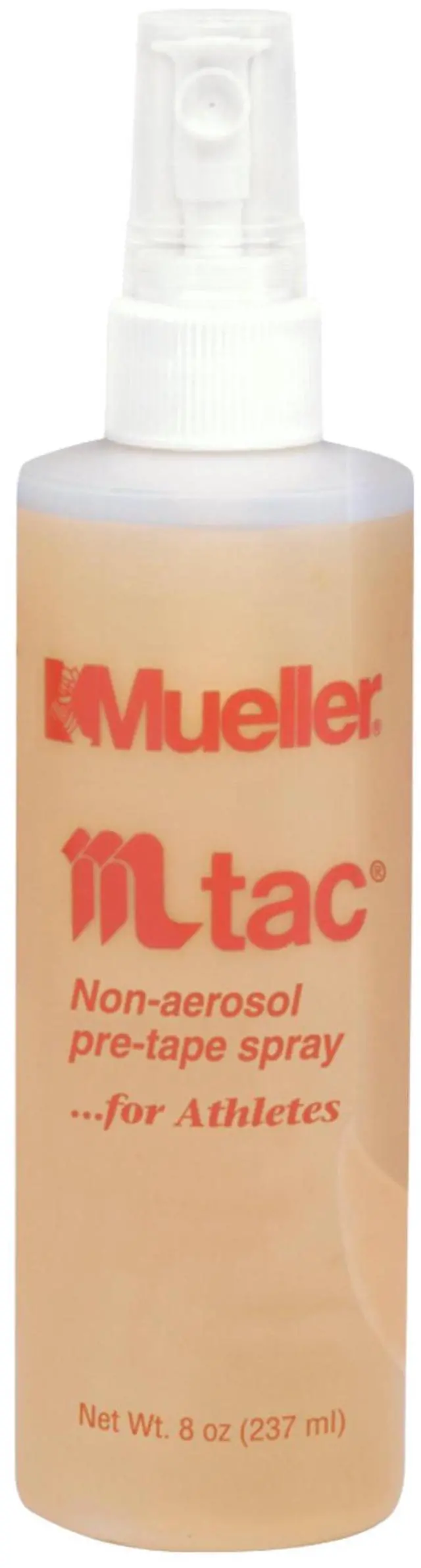 Mueller M-Tac Non-Aerosol Pre-Tape Spray is designed to help tape and pre-wrap stick better to skin. This product does not need to be removed and features an easy application process. This convenient, non-aerosol formula is fast-drying and wont stain. Available in individual 8 oz. pump bottles, this spray is excellent for personal and professional taping purposes. Country of Origin: United States.