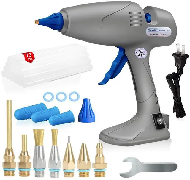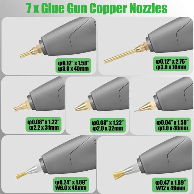 Interchangeable Copper Nozzles- Equipped with 7 interchangeable nozzles made of pure copper material, they can fit different gluing needswhether for delicate crafts or large-area bonding. It handles tasks easily, adding versatility to your DIY and repair projects.