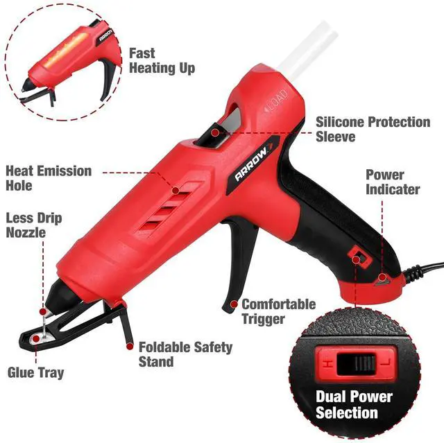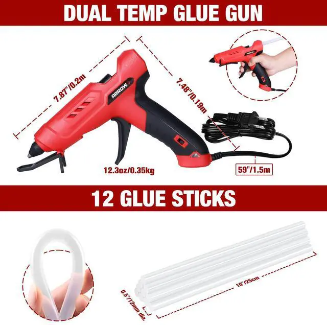Large Capacity & Heavy Duty: Featuring a robust glue capacity, the Arrow GT100DT full-size glue gun eliminates the need for frequent refilling, making it perfect for large and heavy-duty projects. The package includes 12 glue sticks for added convenience