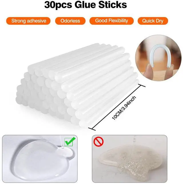 • All-in-One KitWith 30pcs strong adhesive hot glue sticks, glue gun kit has everything to cater your passion for crafting and DIY projects right away. Note: Never touch the nozzle during and after use, prevent scalding.If you have any questions, please feel free to contact us.