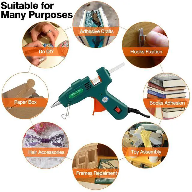 • Useful and Multipurpose: This hot glue gun with glue sticks is an ideal tool for various DIY, such as crafts & arts, home repair, making Christmas decoration, gifts. It can work well with plastic, glass, paper, cotton, fabric and other materials. Also great for kids making crafts!