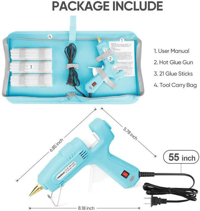 • [HANDY KIT] The package Includes a dual temp hot melting glue gun, 21 high viscous odor free hot glue sticks (7/16" D, 5.9'' L), a premium oxford carry/storage case.