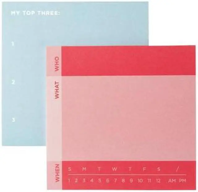 The pink pad comes pre-printed with sections for "Who," "What," & "When" - ideal for taking notes during meetings or calls, or organizing tasks for a project. The "Who" and "What" sections leave space for whatever you want to write. The "When" section has letters for days of the week and hours so you can note a conversation time or date for quick reference later.