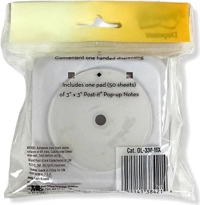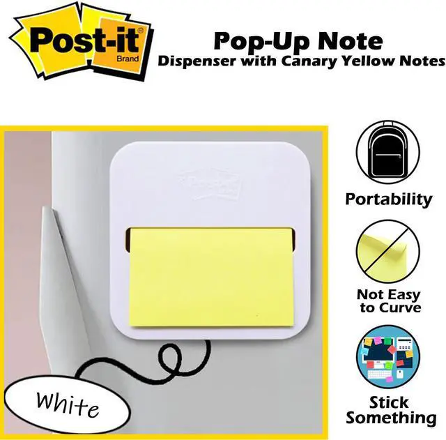 Turquoise blue Dispenser with 50-ct Pad of 3 in x 3 in. Pop-up Notes Convenient one-handed dispensing Includes bottom adhesive for attaching to desk surface