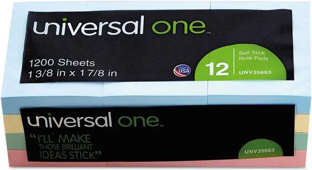 It's not always easy trying to keep your ideas, appointments and messages organized?so use these self-stick notes to help. The notes allow you to quickly jot down what you need to remember and then stick it on a nearby, visible surface?it's that easy. 100 sheets per pad. Notes feature pastel colors. Pad Type: Standard; Sheet Size (W x H): 1 1/2" x 2"; Number of Sheets per Pad: 100; Assortment: 3 Pastel Blue; 3 Pastel Green; 3 Pastel Pink; 3 Pastel Yellow.