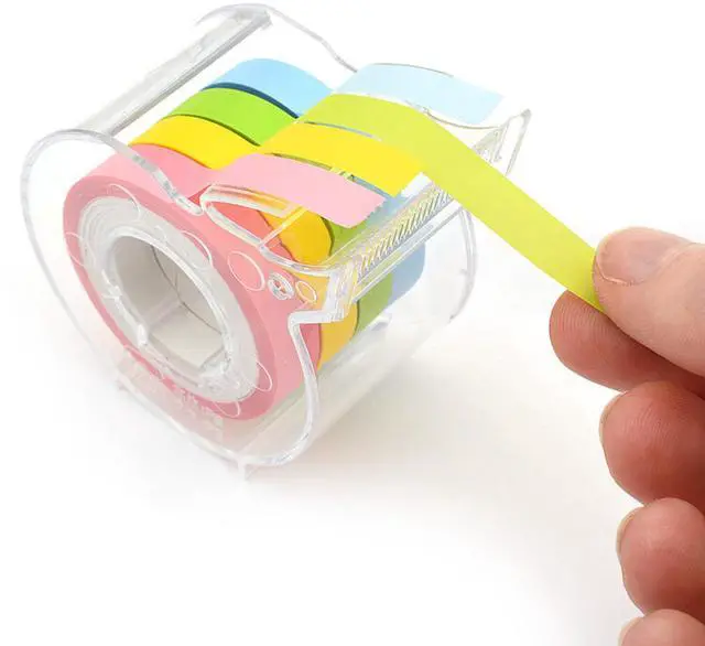 Since they are see-through and peel off easily, these refillable sticky note tapes are ideal for highlighting text and writing notes without permanently marking the page. They're also ideal for highlighting written notes without the risk of ink smearing. These sticky notes come in multiple colors for color coding and are the perfect size for covering full lines of text in 7 mm ruled notebooks. Country of Origin: Japan.