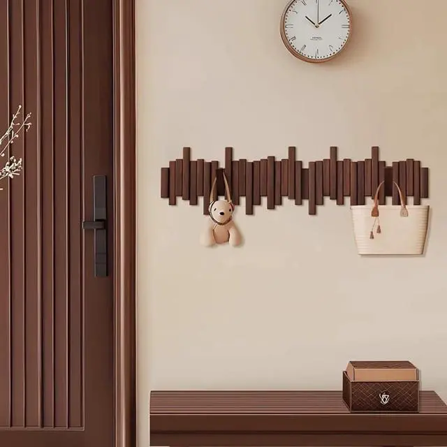 Wooden wall-mounted coat rack, brown, modern decorative hook storage rack, hallway and bedroom storage unit