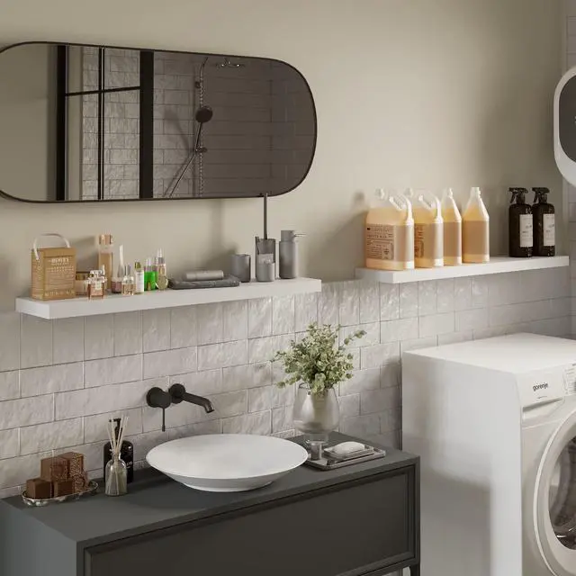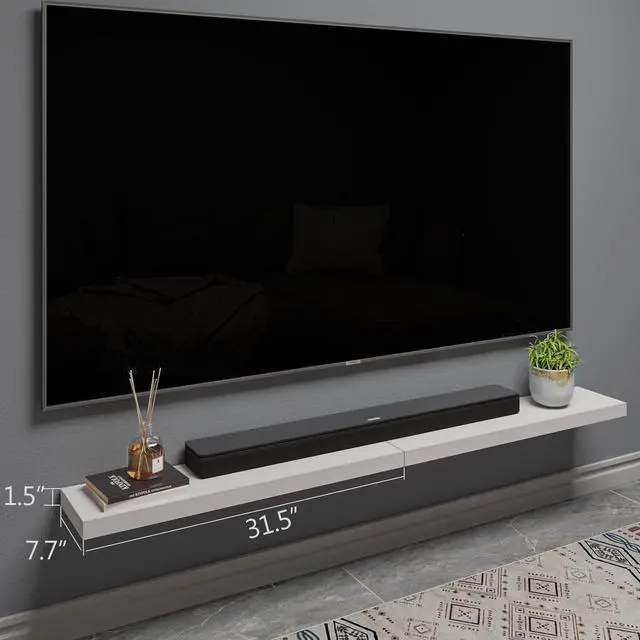 --Are you worried about your precious floor space disappearing with all the clutter taking over? --Are you looking for a practical or sophisticated floating shelf to organize messy gadgets while also decorating your home? --Ideal Size for Most Usage Scenarios After careful consideration of the placement requirements of various household items and the specificity of this installation location underneath the TV, we set the dimensions of this product at 31.5 L x 7.7 W x 1.5. This TV wall shelf has a wide and high storage capacity, which is suitable for placing all kinds of speakers, projectors and game consoles. It is perfect for use as a TV wall shelf. 7.7" wide allows for the space needed for daily storage of miscellaneous items and decorations without taking up too much space and causing a feeling of oppression. It's just an ideal and comfortable size.