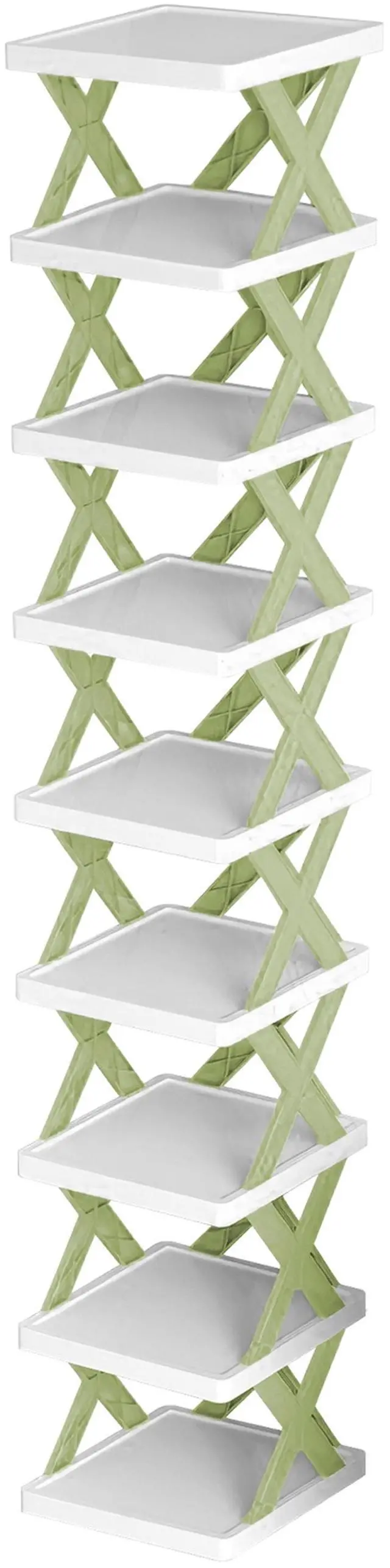 • Fresh Fab Finds 9-Tier Vertical Shoe Rack Narrow Entryway Plastic Space Saver Organizer - Green - One size
