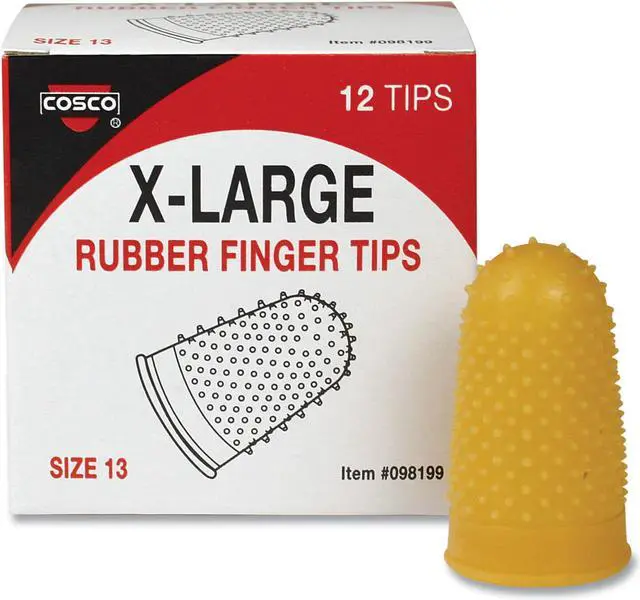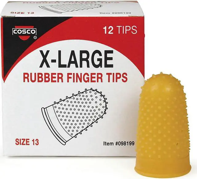 Helps prevent paper cuts when youre flipping or filing documents. Made from pure amber rubber for added durability. Provides a protective barrier between your fingers and paper documents. This prevents sharp-edged paper from causing cuts. Also makes it easier to handle documents due to their ribbed outer layers. Soft rubber material protects more than just skin. Manicures and nail-painting can be expensive, and rubber finger pads protect your nails from chipping and scratches. Material(s): Rubber; Size Group: 13; Extra Large; Open End Inside Diameter: 0.75"; Color(s): Amber.