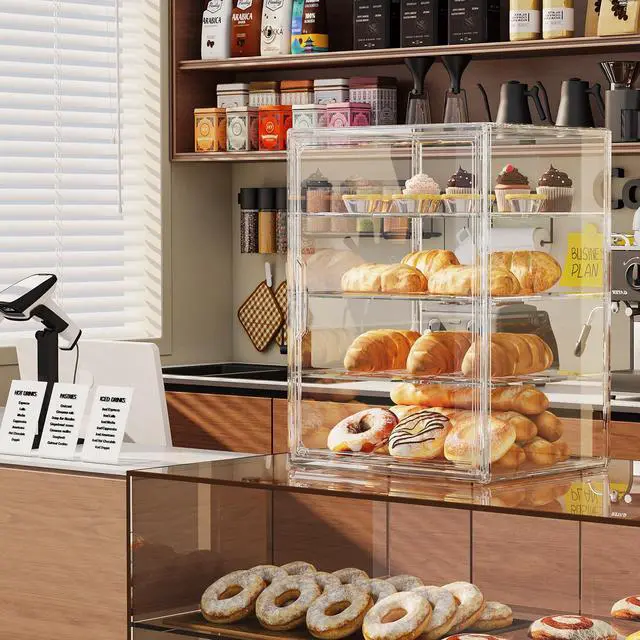 Keeps Bread Fresh: This bakery display case features a magnetic door that ensures a tight seal, keeping your bread and pastries fresh while protecting them from dust and pets
